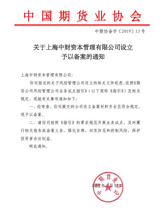 乐鱼网页版登录入口讯 热烈祝贺乐鱼网页版登录入口期货有限公司子公司上海乐鱼网页版登录入口资本管理有限公司于2019年6月20日通过中国期货业协会审核,顺利完成设立备案。