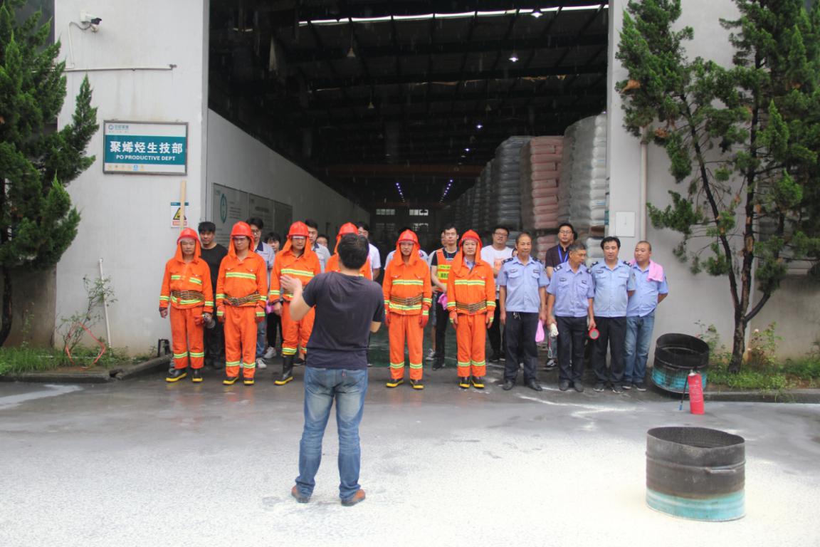 9:50各部接到演习开始命令,本次消防演练全面启动——车间演习点火,现场人员对火情进行初步处理及报警,展开现场自救,前期火情得到充分控制,与此同时车间警戒疏导组在1分钟内完成了车间人员有序逃生疏导工作。另一方面公司微型消防站接警后第一时间作出反应组成应急消防队伍,并在2分35秒内全副武装抵达现场,30秒内火情得到控制。
