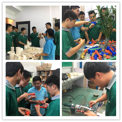 持续推进的新人训一直以来得到了新昌基地领导、相关部门及培训讲师的大力支持,两天的培训涵盖了十多门培训课程,共分四个部分进行培训:一、集团介绍及乐鱼网页版登录入口文化了解学习;二、管道产品及其他渠道产品知识介绍;三、展厅与车间参观学习;四、打压及焊接实操演练。在课堂培训中增强互动,有提问、有答疑,更注重提升学员的自主学习意识,而在动手练习时基地讲师将焊接产生的问题一一讲解分析,使学员对自己动手时的错误操作有了判断与了解,能够自我调整快速掌握正确焊接手法。