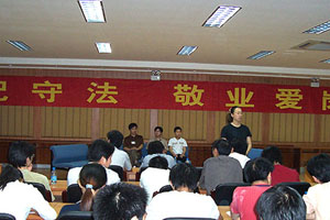 本次活动还邀请了三位来自不同岗位的嘉宾,分别是型材车间主任王宏、型材车间班长窦兴愿、质管部检验员汪金伟。嘉宾与在场员工就公司目前存在的一些违纪现象提出了各种解决方法,并对如何提高新、老员工岗位技能提出建议。会上,大家积极发言,还就岗位职责的有关内容进行了现场有奖问答。