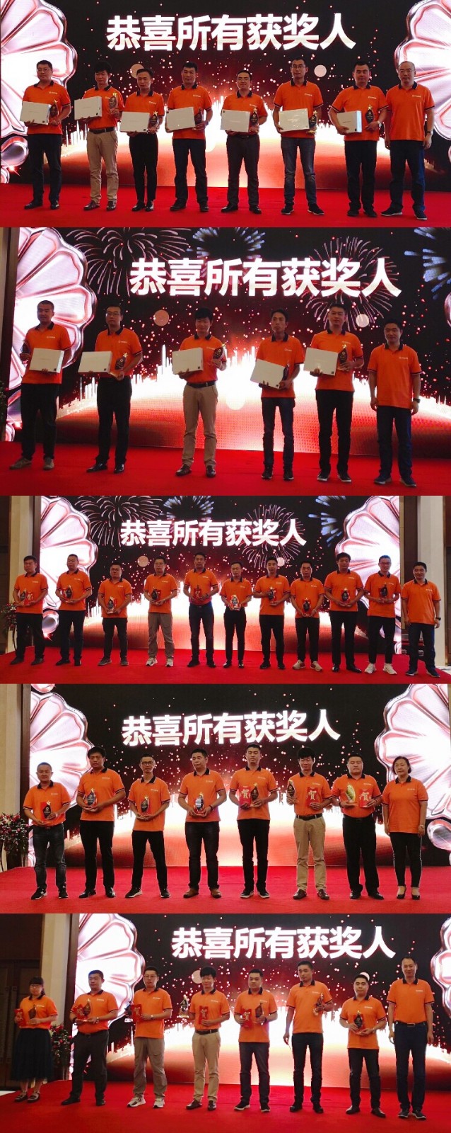 随后,由天津生产基地总经理助理高元杰先生颁发优秀服务奖、优秀新人奖、优秀经销商开发奖、优秀新产品奖,由天津生产基地副总经理李敏女士颁发优秀渠道建设奖、优秀市政开发奖,由北京总部首席执行官刘芳兴先生颁发优秀营销机构奖、2015-2019连续增长奖,由化建业总裁助理俞仲达先生颁发优秀管理机构奖。希望获奖机构再接再厉、持续增长;未获奖机构奋起直追、年底反超。