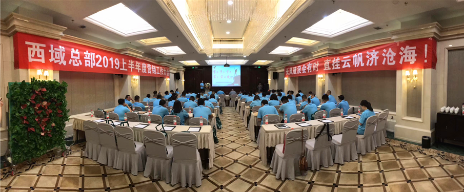 会议首先由西域总部首席执行官黄建伟先生进行发言。黄总对西域总部各项销量数据进行汇总、比对、分析,总结了上半年的营销工作的同时,针对目前市场与团队中存在的问题进行剖析与思考,同时对下半年的营销工作做了详细部署,提出西域总部后续发展方向与目标: