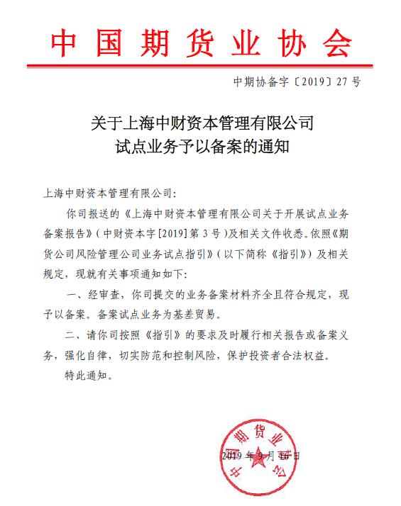 乐鱼网页版登录入口讯 热烈祝贺乐鱼网页版登录入口期货有限公司子公司上海乐鱼网页版登录入口资本管理有限公司于2019年9月16日经过中国期货业协会审核,顺利获得基差贸易试点业务备案通过。