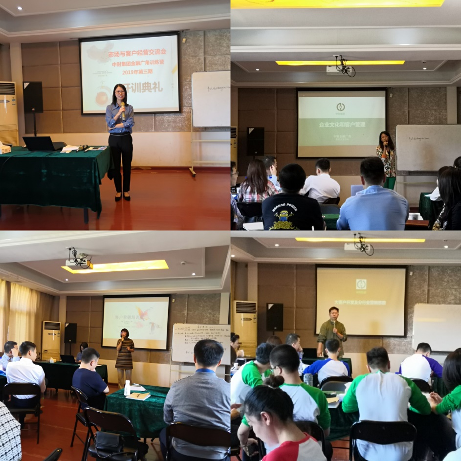 首日上午,通过破冰活动相互认识,并确定各组的组名与组呼。随后,由客户开发中心俞科长讲解《文化宣贯与客户管理》,课程专业而生动,大家积极互动,受益良多。之后,呼和浩特首席张总针对《客户开发及维护》进行了分享,期间结合自己广角特色着重介绍了个人综合能力及随机应变能力的重要性。下午,由客户开发中心施科长带来《产品及分行业营销思路》的课程,介绍了营销的本质和新兴的营销思路,为大家营销思维上添加了新的色彩。