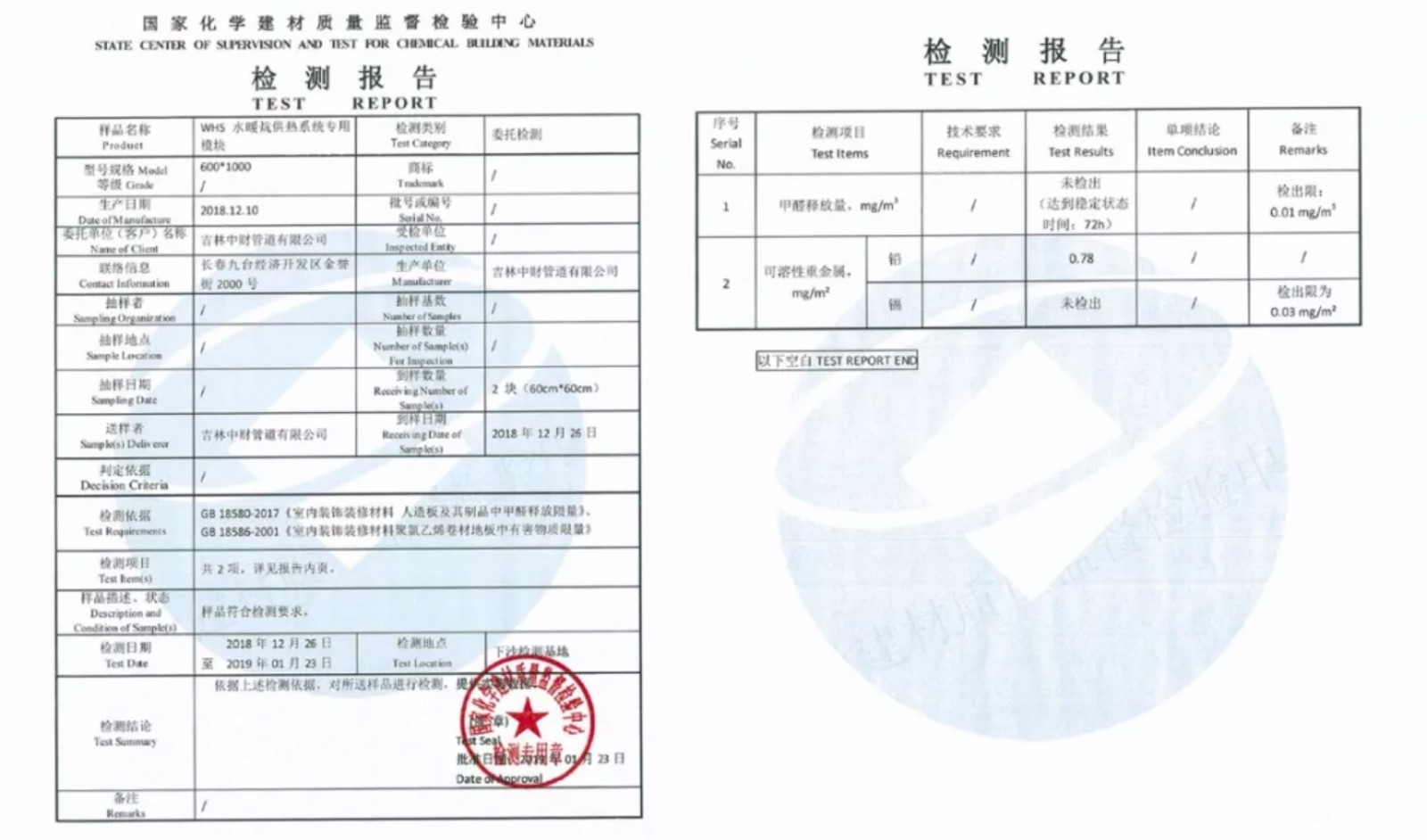 经过国家化学建材质量监督检验中心权威检测,炕板模块重金属含量和甲醛释放量完全符合使用标准,人们可放心使用。