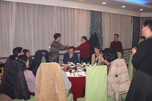 元月16日晚,乐鱼网页版登录入口担保、乐鱼网页版登录入口拍卖、乐鱼网页版登录入口典当三公司全体员工共聚一堂,欢庆迎新。席间,总经理郑文兵对大家一年来的辛勤工作作了简单的总结和肯定,并致词祝贺,为荣获“2003年度优秀员工”的同志颁发了奖。