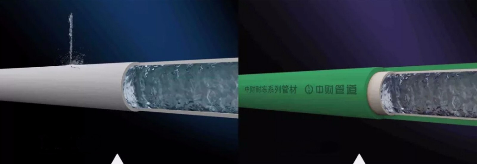 左:普通水管冰冻状态;右:乐鱼网页版登录入口PPR双层复合管(耐冻系列)冰冻状态