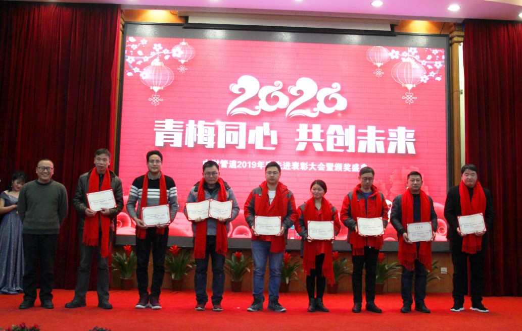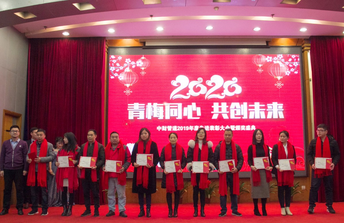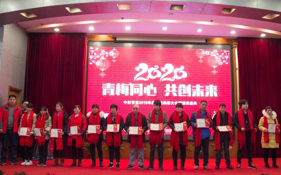随后,在喜庆庄重的音乐声中,公司领导先后为获得2019年度的80名先进员工(勤奋拼搏奖、卓越质量奖、技术精英奖、年度绿叶奖、优秀之星)、12个先进集体代表(生产管理、质量管理、仓库管理、机模管理、营销服务、现场管理)、22个优秀项目奖项的代表颁奖,对他们在过去一年里奋力拼搏、敢于创新取得的成果予以肯定,同时希望他们在新的一年里积极发挥模范作用,带动全体员工锐意进取,推进公司管理再上新台阶。先进代表发表获奖感言,感谢公司过去一年来的栽培与肯定,感谢公司提供的广阔的发展平台,新的一年,将带着公司的期许,脚踏实地,不负韶华,共同迎接2020年更好的发展。