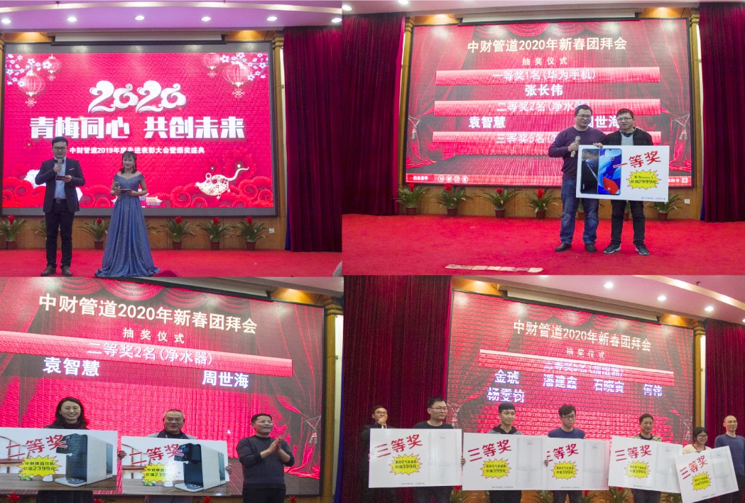 晚上17时30分,在《青梅同心,共创未来》VCR播放中,浙江乐鱼网页版登录入口管道新春团拜会拉开帷幕。在热烈的掌声中,副总经理何帆先生作祝酒词,何总指出2019年是百亿元年,在座的每一位创造了历史,也见证了历史,大家将最热烈的掌声献给自己;今天也是梅渚厂区正式投产一周年的日子,举杯共祝“梅渚厂区生日快乐”。身为乐鱼网页版登录入口人,我们见证了乐鱼网页版登录入口管道一步步发展壮大,由衷的感到骄傲和自豪;青山与梅渚厂区正如青梅竹马,今天更要青梅煮酒论英雄,共诉衷肠,为美好的2020年献上诚挚的祝福。致辞结束后,丁总和参加团拜会的全体人员一同举杯共庆过去一年取得的业绩和对2020年的期许,感谢大家一年来的努力和辛苦付出,愿青山与梅渚齐飞,新昌为化建增色。一时间觥筹交错,笑语喧哗,欢乐的气氛弥漫了整个宴会大厅。
