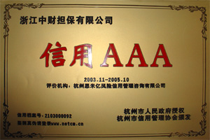 浙江乐鱼网页版登录入口担保被授予“信用AAA级”信用优质企业,优先享用政府扶持政策。此次信用评级是根据市人民政府杭政办[2003]15号文件及国家法律法规的有关规定,由杭州思米亿风险信用管理咨询有限公司按照独立、客观、公正、科学的原则,采用国际通行的信用等级标准评定。