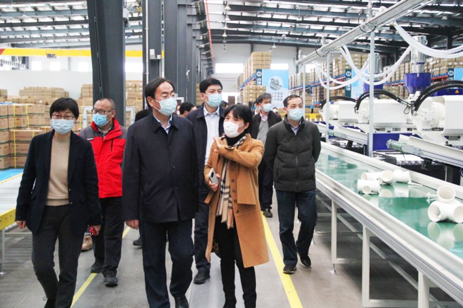 梅渚厂区负责人何帆先生向马书记一行汇报了乐鱼网页版登录入口管道梅渚厂区的规划建设、疫情防控、复工复产政府支持等情况。马书记肯定了公司的工作,同时勉励公司加快产业链优化升级,继续推进自动化、智能化工厂建设,不断提升市场占有率。