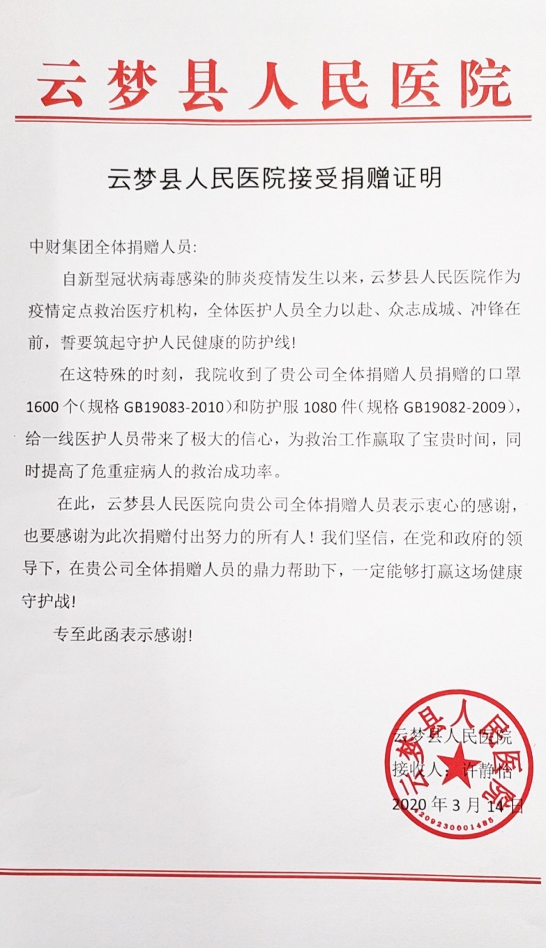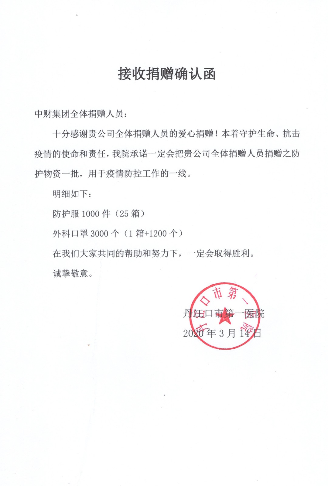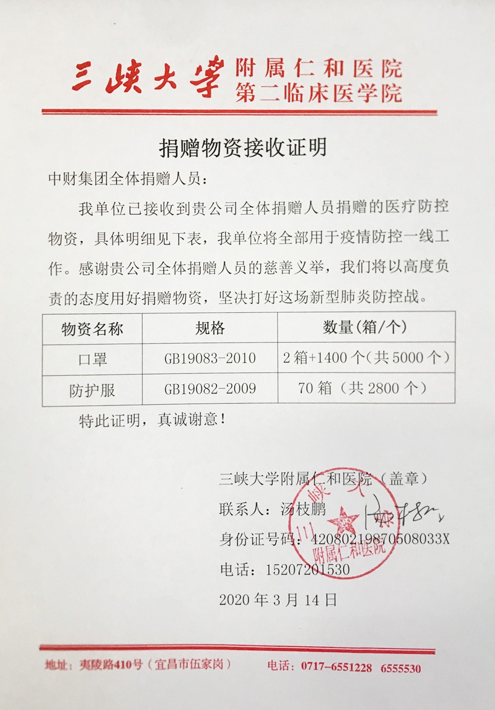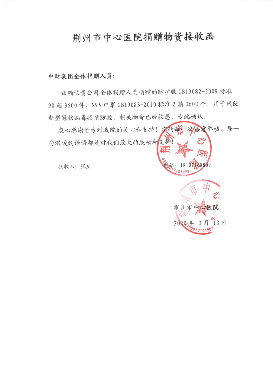 本次捐赠,经深入调研有关抗疫医院的需求,按急需捐赠,确保合理使用善款。共计捐赠医用N95口罩10万个和防护服5万件。医院接收捐赠物资的书面回执也正在陆续反馈中,截至3月15日,已收到11家。