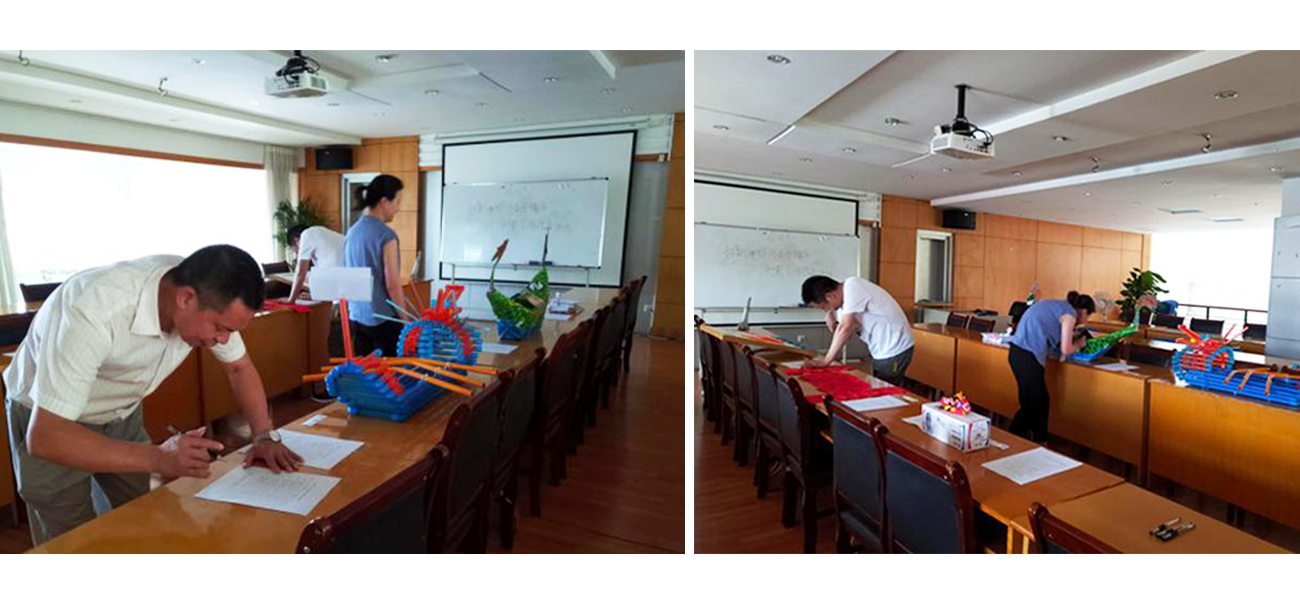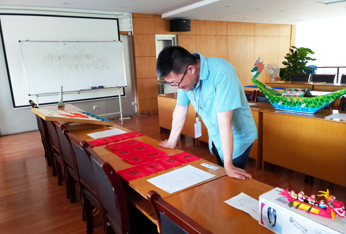 在繁忙的工作之余,大家都挤出时间为自己的部门贡献一份力量,无论男女、无论岗位,只要你能行,你就上!评选当天,我们看到了各式各样优秀的、富有创意的作品。如有用管道制作的龙舟、陶泥捏成的龙舟、对联、版画等等。