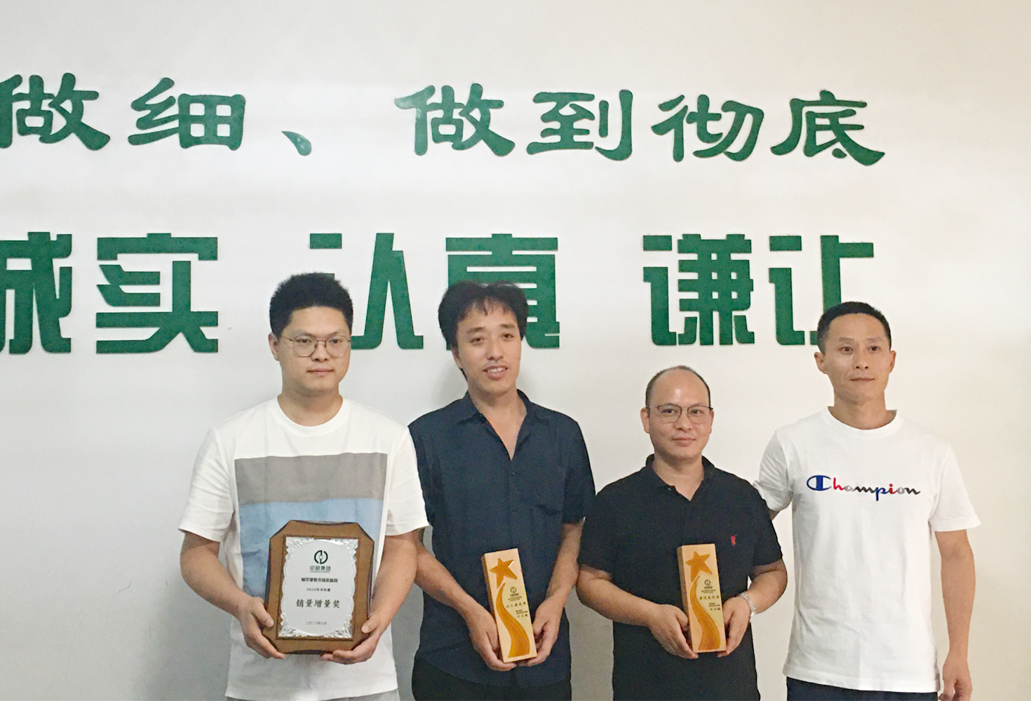 2020年上半年共评选出4个水工建设奖、8个渠道建设奖、3个团队建设奖、4个优秀市场部,根据各市场部上半年实际销量,评选出销量增长奖前十市场部,并对所有获奖者颁发奖杯。