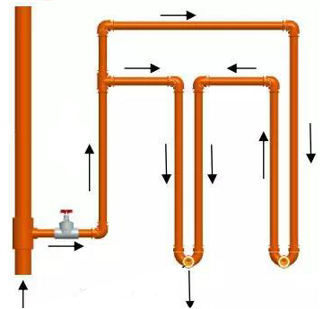 传统施工方式的PPR给水管路,是呈树状图形式的,这样的管路结构只会使一部分的管内水流,受用户用水影响而流动,从而保持用水纯净。