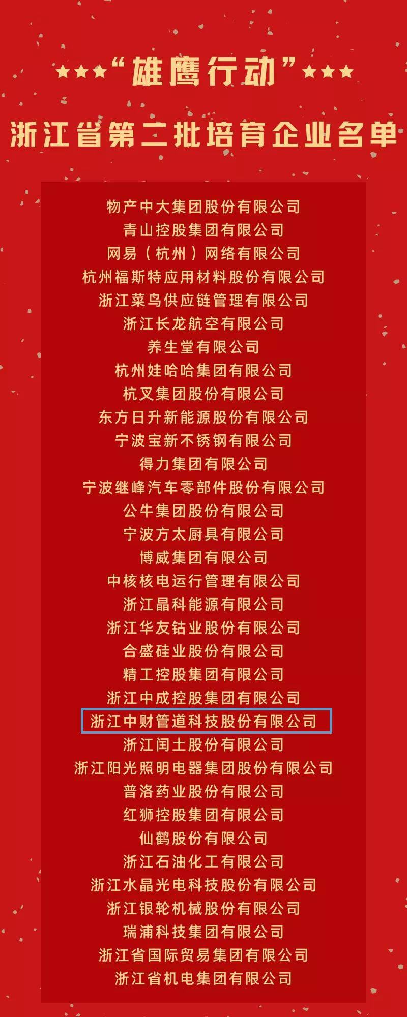 喜讯!乐鱼网页版登录入口管道入选浙江“雄鹰行动”培育企业名单
