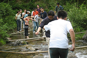 龙王山自然保护区位于龙王山山腰上。100多平方公里的连绵山脉,其间大大小小的山涧飞瀑和600余种植被构成了龙王山自然保护区独特的自然景观。此次拓展活动主要有爬山、速降、溯溪三项, 在同事之间的团结配合下,三项活动均有条不紊地进行并出色完成。