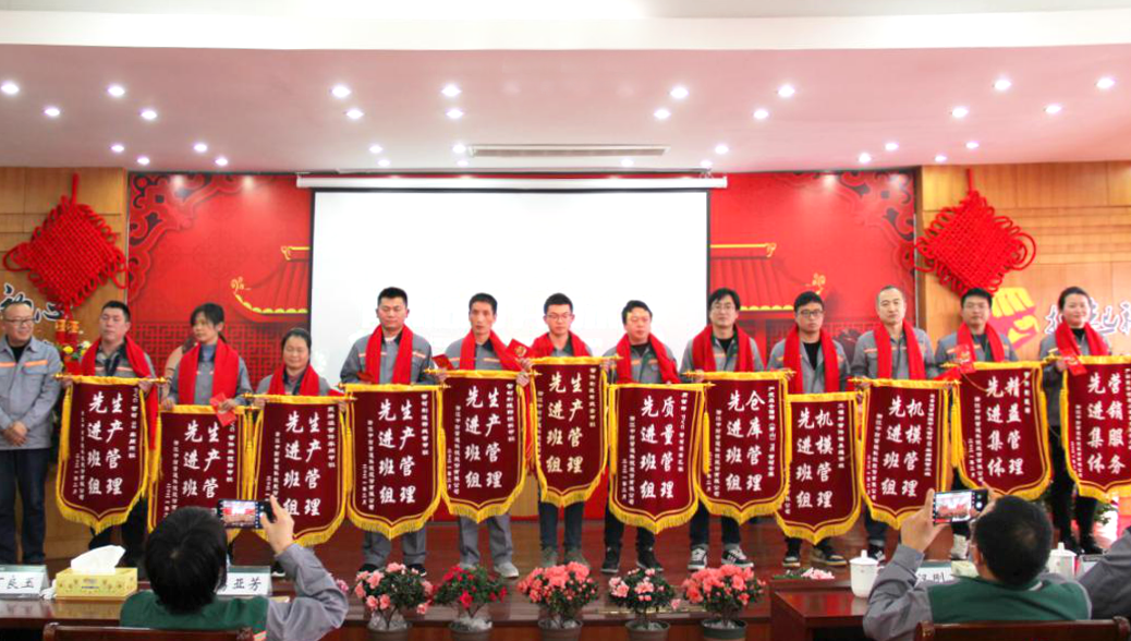 随后,公司领导为获奖的76名先进员工、12个先进集体代表颁奖。同时,受化建内务委托,颁发了8个化建业技术改进和管理创新奖项、1个化建业优秀设备管理团队奖项、1个化建业内务优秀标兵奖项、1个化建业内务管理之星奖项以及化建业最高奖项“厚实优秀奖”。大会对所有获奖员工在过去一年里奋力拼搏、敢于创新取得的成果予以肯定,同时希望他们在新的一年里继续积极发挥模范作用,带动全体员工锐意进取,推进公司管理再上新台阶。