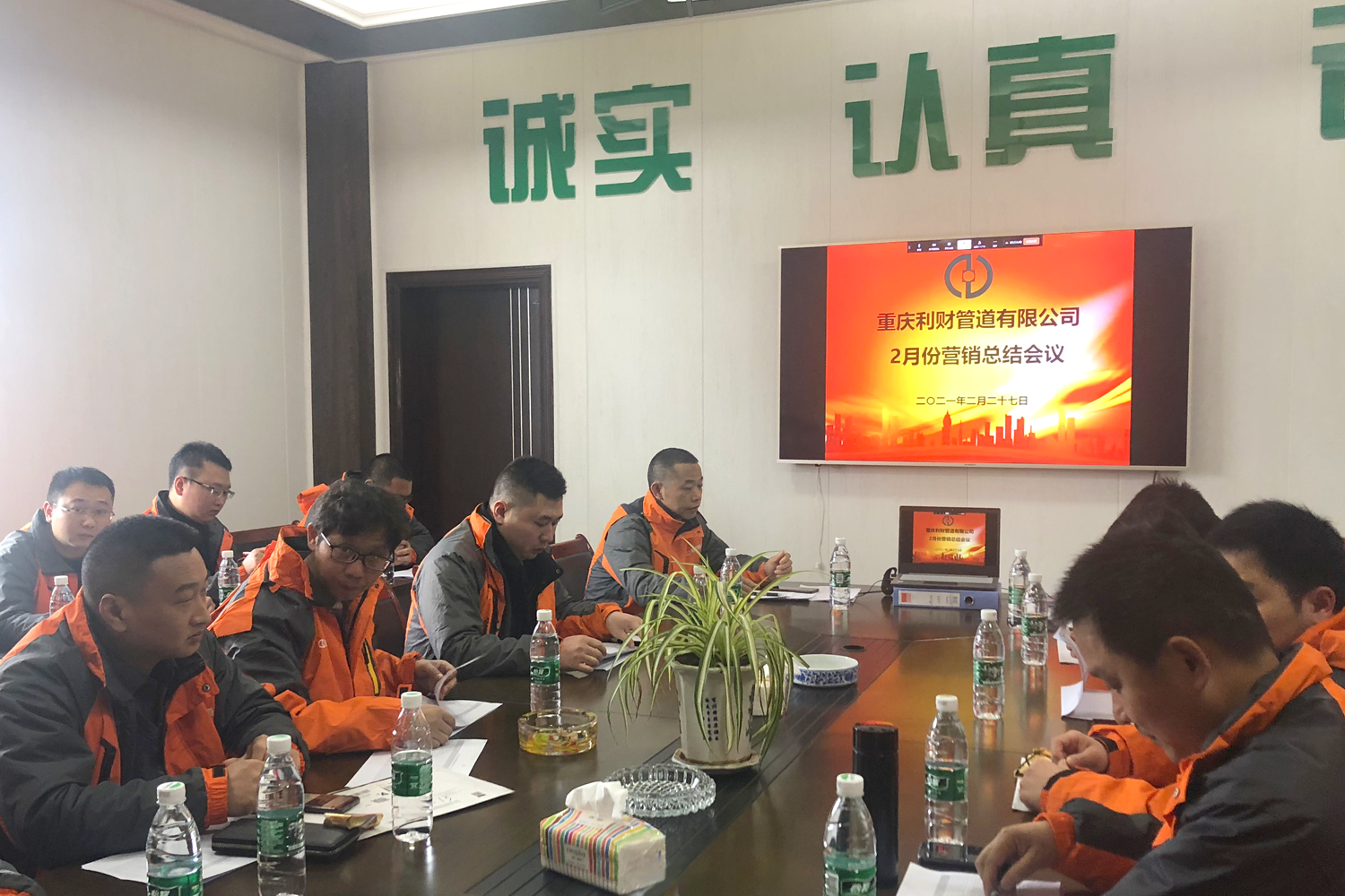 乐鱼网页版登录入口讯 重庆利财管道有限公司2021年度2月营销总结会议于2月27日以现场会议+钉钉视频会议形式召开,公司领导班子、全体营销人员及相关科室负责人出席会议,会议由公司营销部柯斌主持。