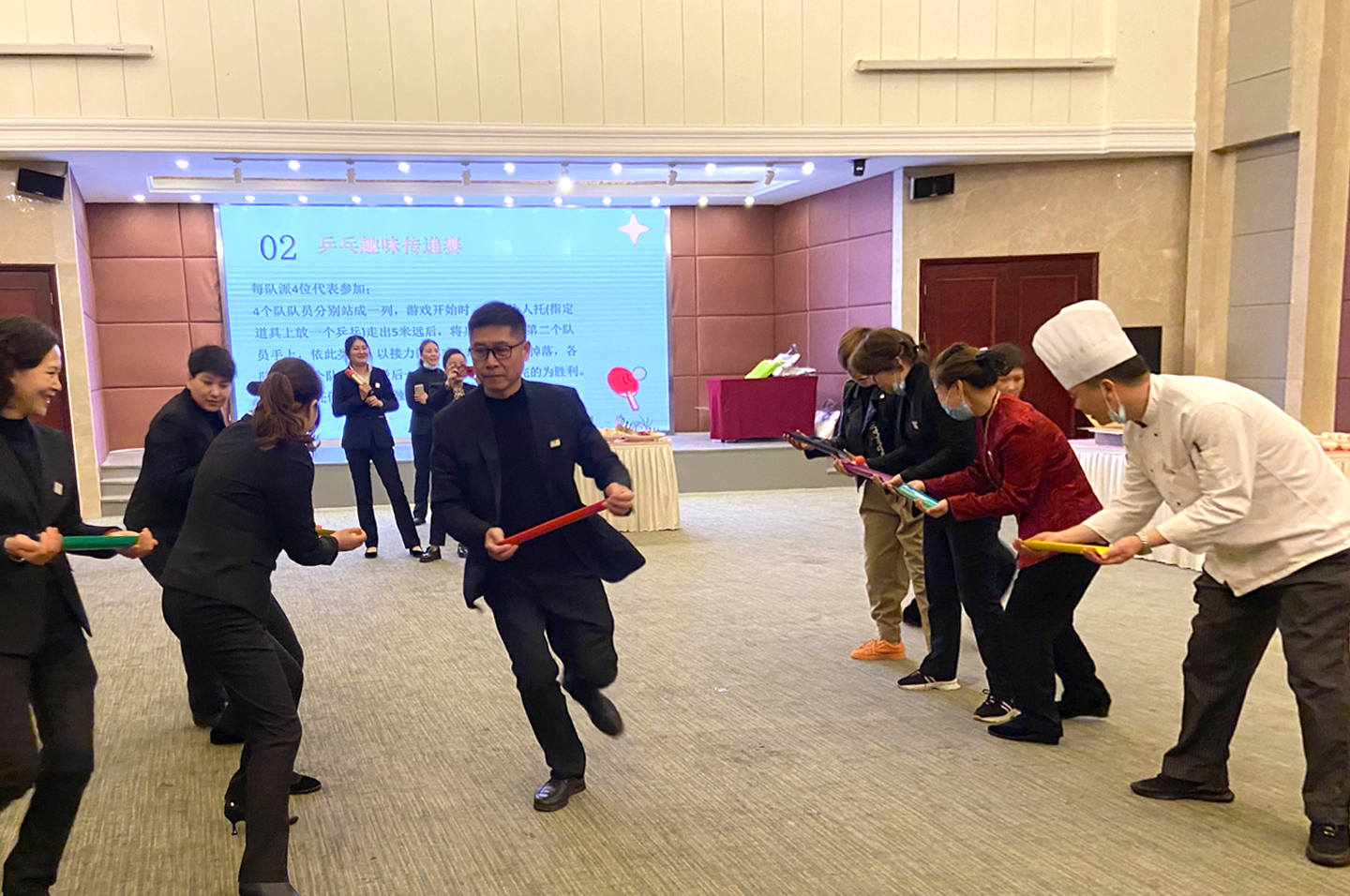 1点30分,生日会活动正式开始。酒店餐饮部给在场的26位生日员工准备了蛋糕,并由各部门负责人为所属员工送上生日祝福。同时,为庆祝三八女神节,酒店还为所有女同事们送上手写的贺卡和精心准备的礼物。本次活动还设置了游戏环节,让员工通过游戏的形式增强彼此间的情感和友谊。大家在活泼欢快的气氛中,共同分享着节日的喜悦,此刻彼此不仅是同事,更是休戚与共的家人和战友。