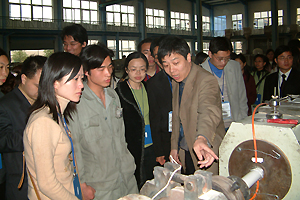 乐鱼网页版登录入口管道科技总经理楼裕苗亲自带领活动人员参观新昌厂房与生产设备(二)