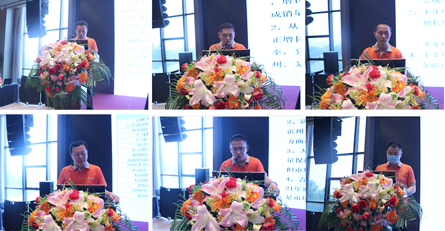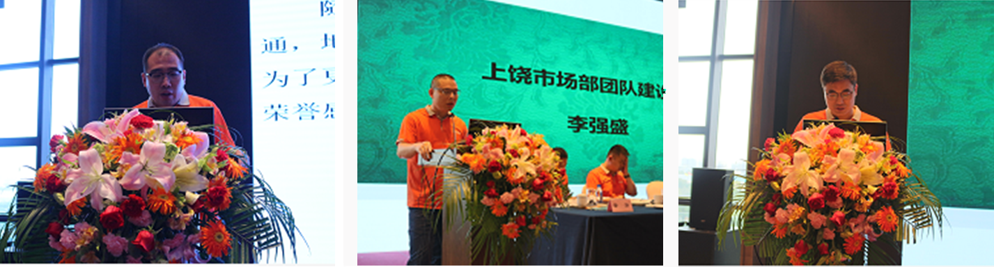随后是优秀代表发言环节。本次会议由合肥专业渠道市场部经理杨培昊、天津管道城市零售市场部开发组长龚臣、上饶管道城市零售市场部经理李强盛、芜湖管道城市零售市场部经理郭超分别在风口市场开发、水工建设、团队建设、市场建设方面做专题分享。