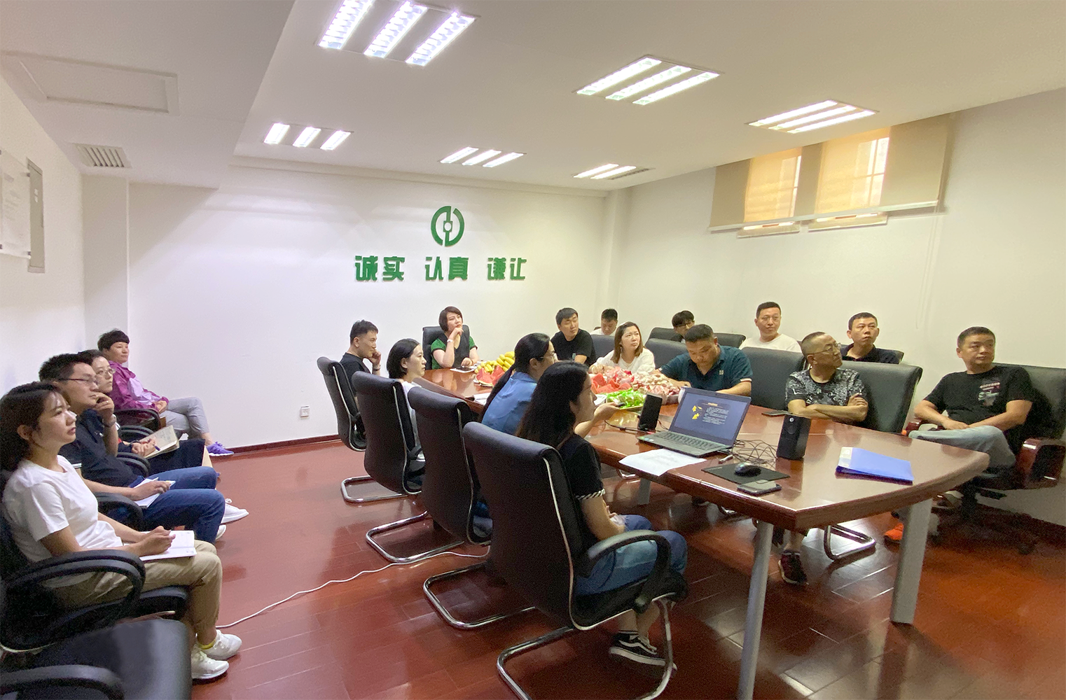 内务总监李总对本部门上半年工作做汇报及反省。李总表示,接下来将全国性大客户作为重点跑动对象,保持跑动频率。同时从招聘环节筛选营销能力强、客户资源丰富者重点培养。稳固团队,业绩为先。