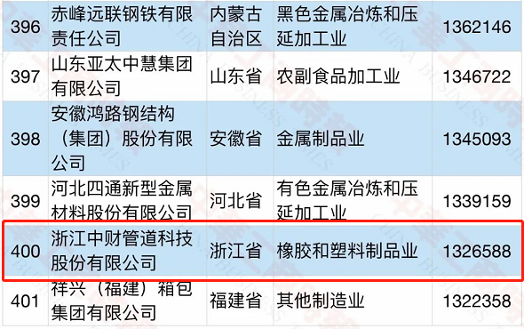 乐鱼网页版登录入口讯 9月25日上午,2021中国民营企业500强峰会在湖南长沙召开,峰会发布了2021中国制造业民营企业500强榜单,乐鱼网页版登录入口管道位列榜单第400名,较去年靠前21位。