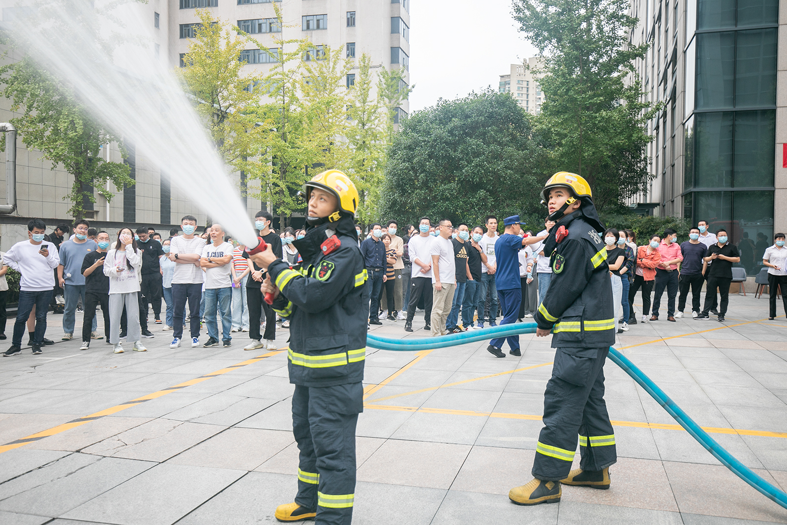 集合完成后,滨江消防大队人员现场演示并讲解了消防水枪灭火过程,街道及社区宣传员介绍了线上消防安全学习途径,现场气氛热烈,互动性高。
