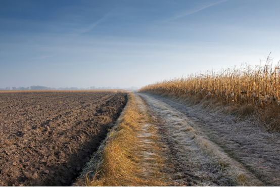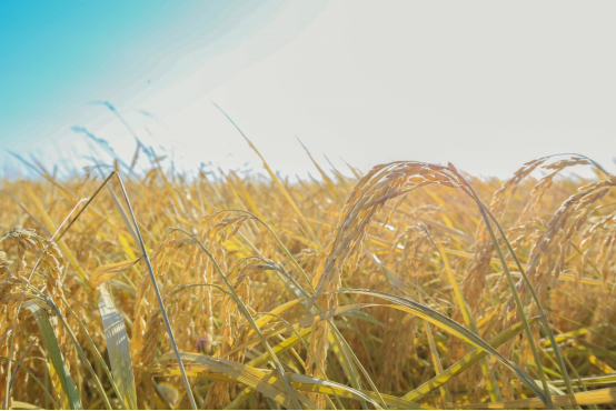 稻杆已经完成了使命,渐渐枯萎,沉甸甸的稻穗低下了头,北风吹过一片“沙沙”的清响,寒风带走了水分,稻穗完全成熟,稻谷足够干燥,到了可以收获的时候。