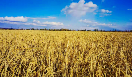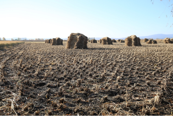 金秋十月,水稻已经成熟,金色的麦穗在田间等待落霜。在寒冷的东北黑土地上,空气干燥,水稻在田间自然风干。