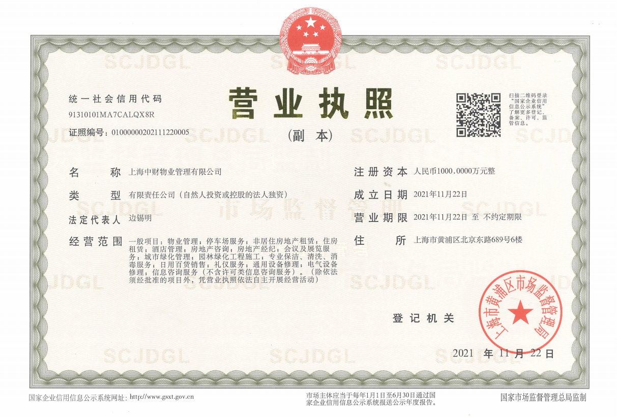 乐鱼网页版登录入口讯 2021年11月22 日,“上海乐鱼网页版登录入口物业管理有限公司”完成企业设立登记手续,并成功领取营业执照,初步达成董事局“每收购一个大楼一律成立一个管理公司与之进行各项服务的配套”之要求。