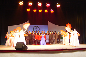 晚上7时许,楼总致晚会开幕词,尔后,全体管理团队以一曲大合唱《走进新时代》拉开了晚会的序幕。歌声激越,振奋人心!
