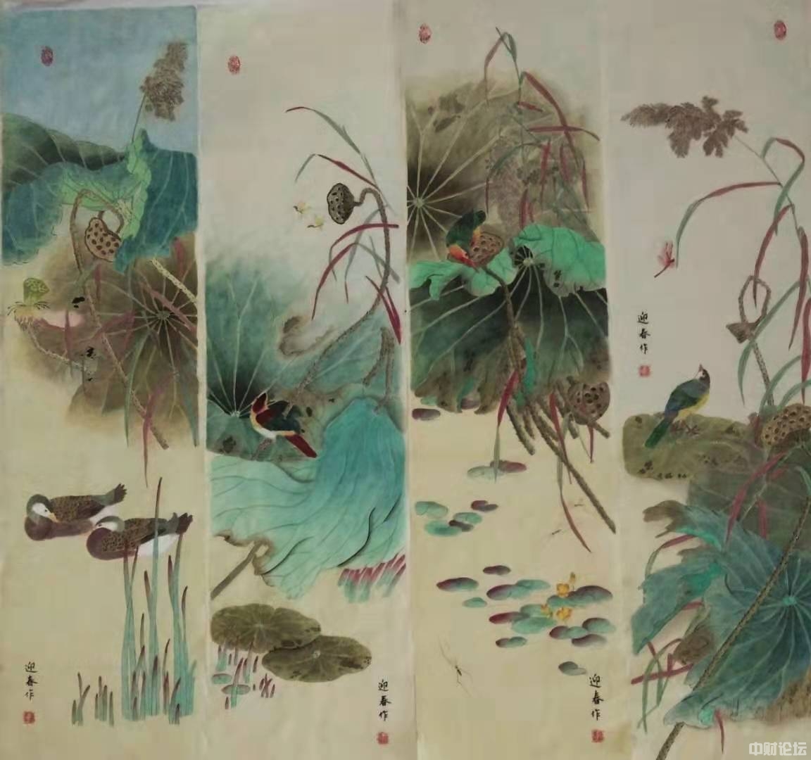 乐鱼网页版登录入口论坛第62期计酬作品 高迎春《荷塘四条屏》