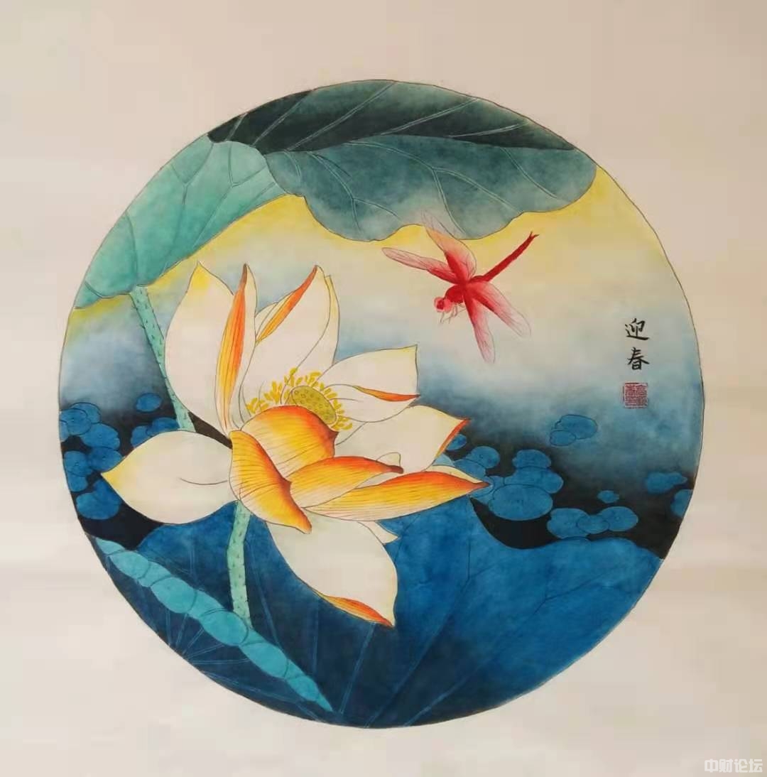 乐鱼网页版登录入口论坛第66期版主计酬作品 高迎春《工笔荷花蜻蜓》