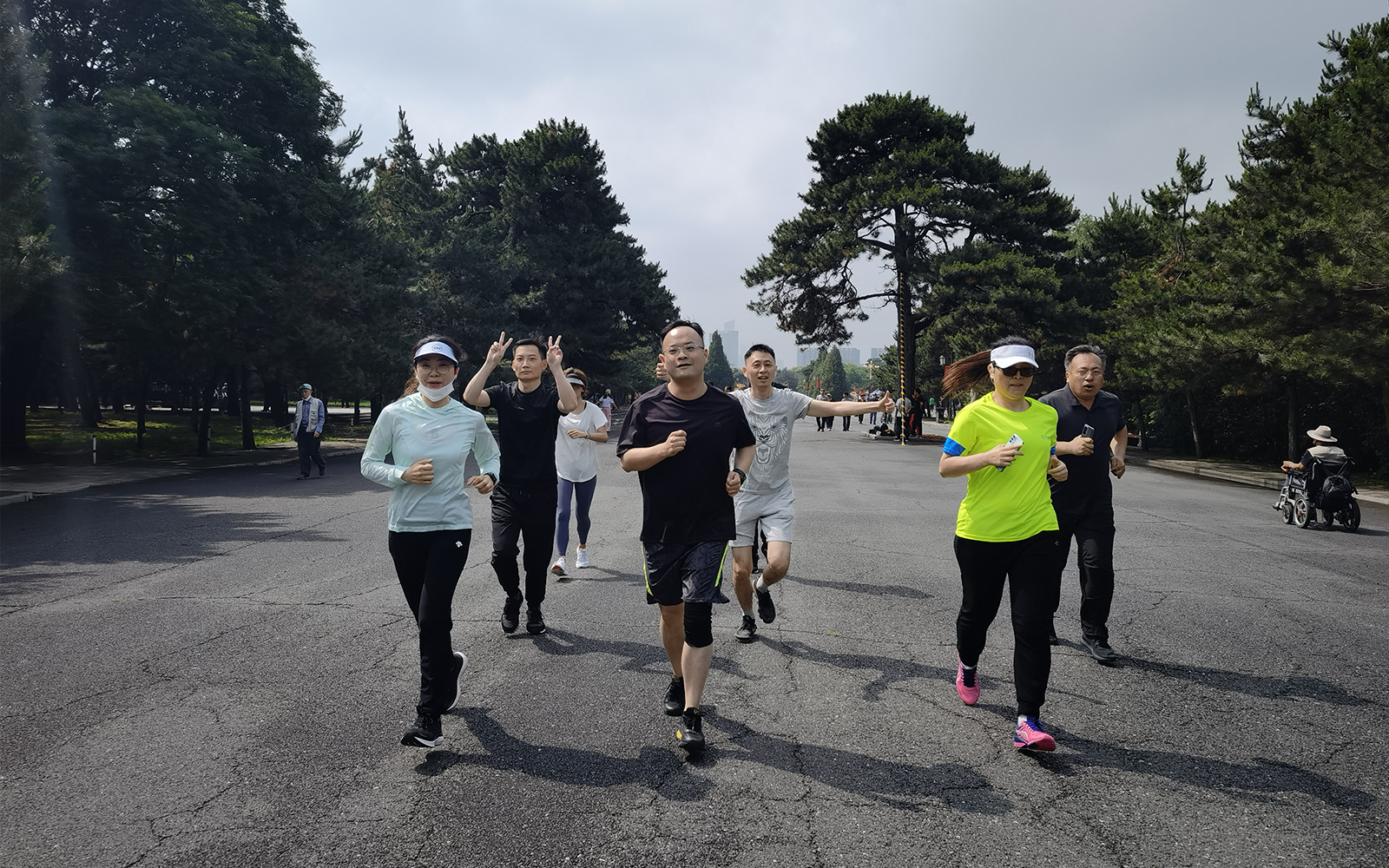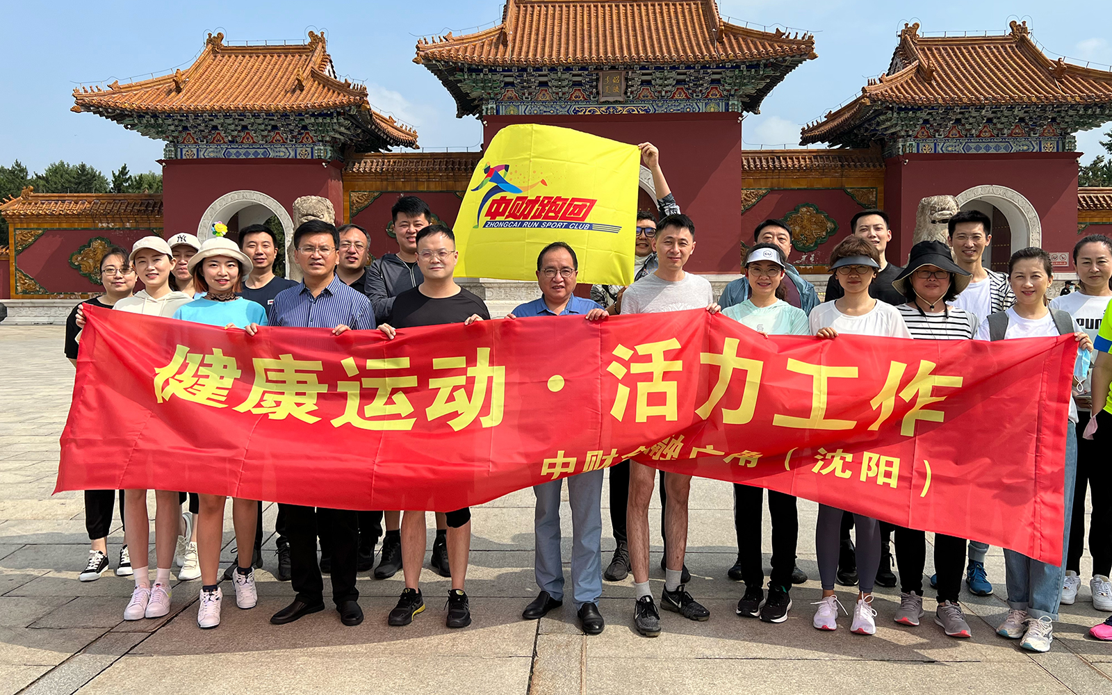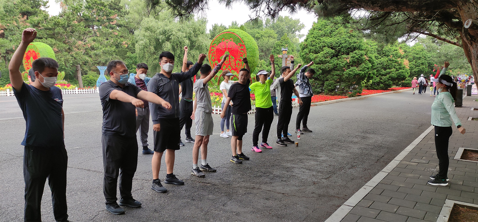参加活动的广角员工于清晨在沈阳北陵公园门口集合,在财务总监张总的带领下,进行了跑前地热身活动与跑步期间相关注意事项的提示。随即在CEO包总的领跑下,大家整装待发,朝着5公里的既定目标奔跑向前。