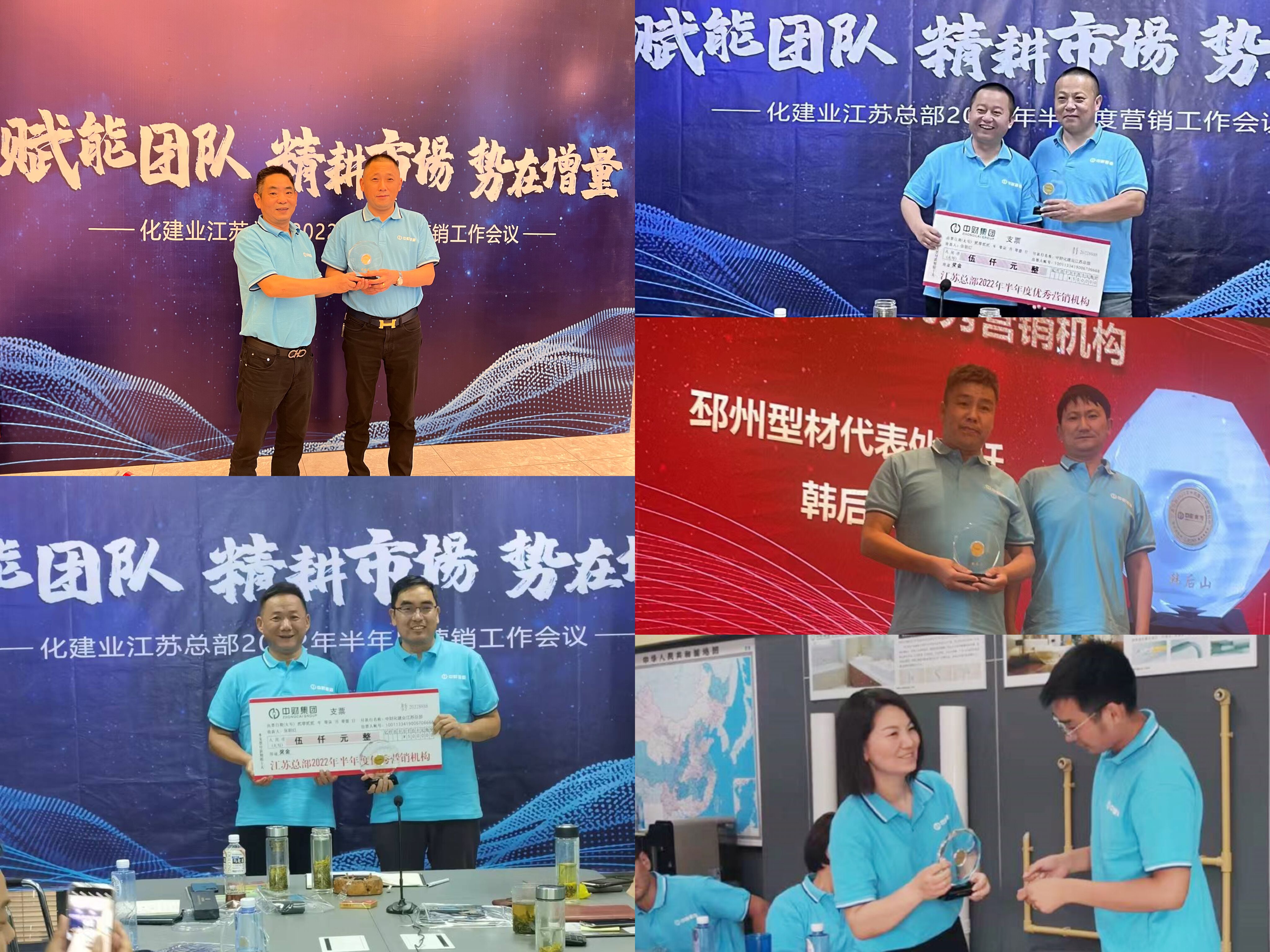 在化建业领导、总部领导的带领下,一批优秀的营销机构也随之脱颖而出,江苏总部对2022年上半年度优秀营销机构进行了表彰。获奖优秀营销机构分别是阜宁管道代表处乔维东先生、海安管道代表处许华先生、金湖管道代表处卞远航先生、邳州型材代表处韩后山先生、六合型材代表处陈沪明先生、启东型材代表处张朝红先生,由各分会场管理机构CEO为他们颁发了荣誉奖杯及奖励。随后,获得荣誉的优秀营销机构一一发表了获奖感言,并一表决心,年底一定再创佳绩!