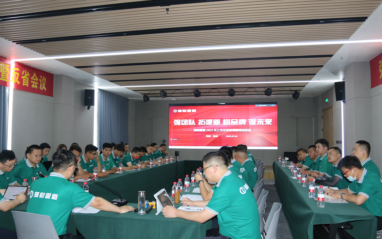 4日下午及5日上午,市场管理部、财务部分别对河财上半年主要营销工作及营销数据做了多维度分析和通报。李总指出,各机构和各经销商年度评优评先均和机构、客户销量增长率、增长量及利润贡献率息息相关,各机构负责人要关注各自销量数据背后的内容,分析产品结构占比,尤其是PP-R等专项产品的结构占比、管材件结构占比,引导客户提高专项产品及配件的销售占比。随后,各机构负责人汇报了各自辖区上半年工作进展情况及下半年目标计划。李总一一点评并指出,各机构要加快仓储办公一体化建设,只有通过硬件条件的改善,才能吸引更多的凤凰来落地,市场造势、队伍建设、渠道建设、品牌建设、客户开发,缺一不可,都要加快工作步伐。