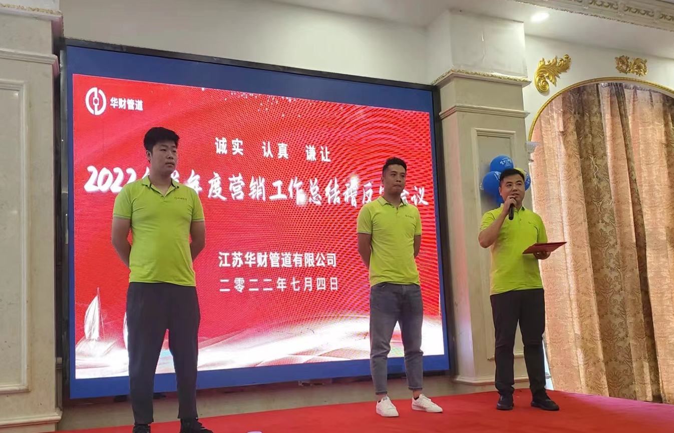 乐鱼网页版登录入口讯 江苏华财管道2022年半年度营销工作总结暨反省会议于7月4日—5日在滨海凯帝王朝酒店四楼召开,公司领导班子,各办事处负责人、全体营销人员、内务相关人员参加了此次会议,会议由营销总监程飞主持。