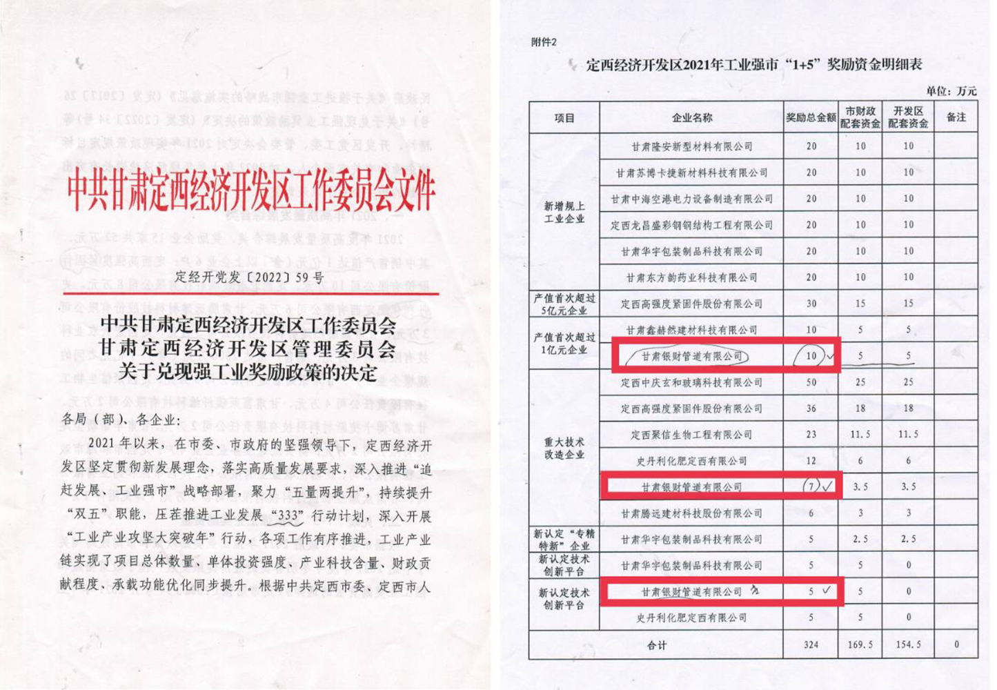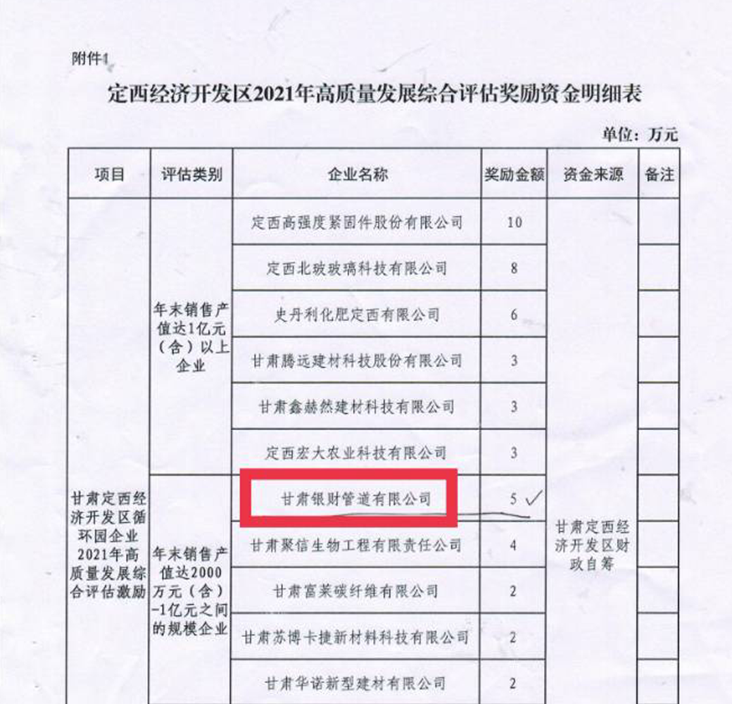 甘肃银财管道获定西经济开发区发展贡献奖