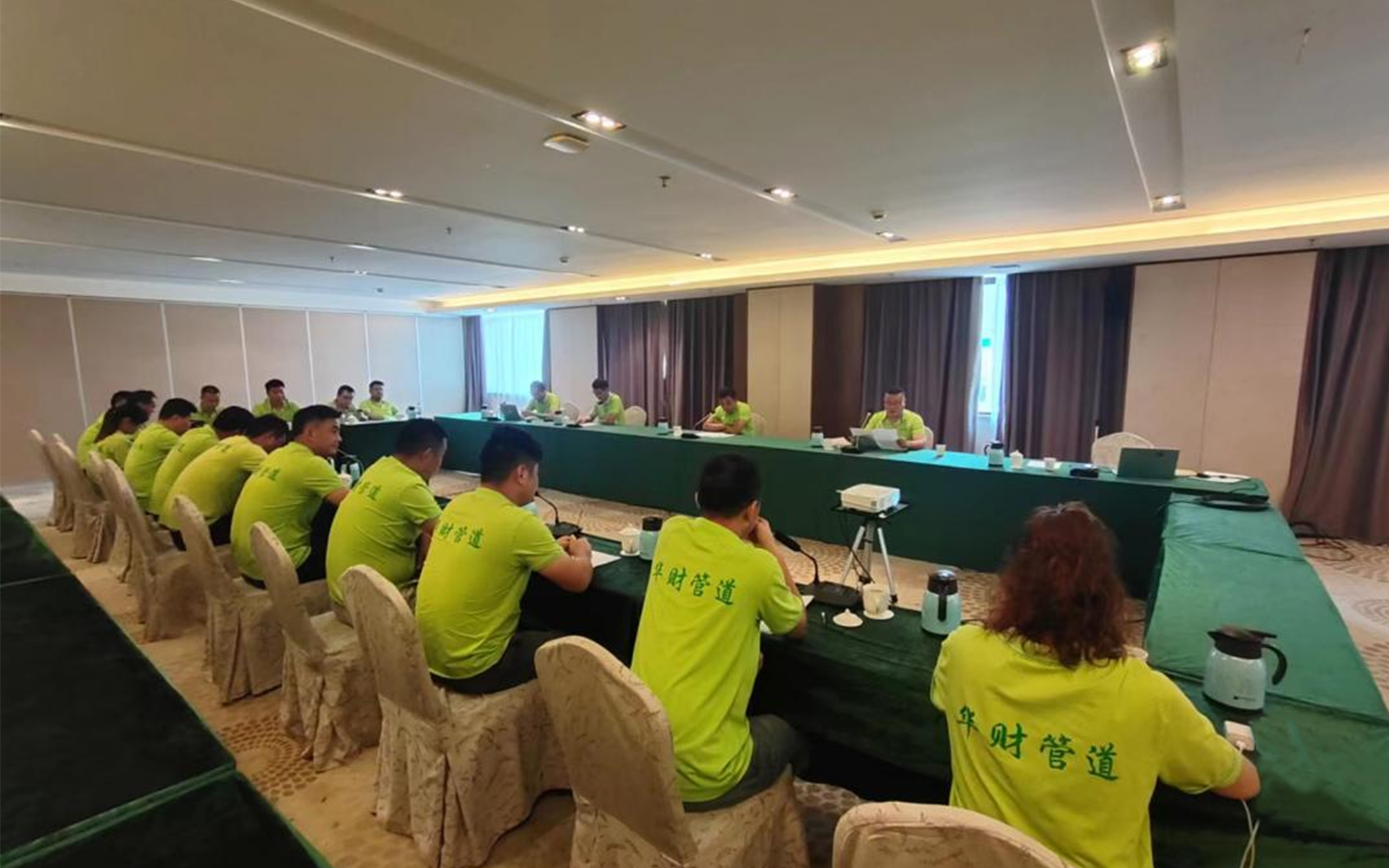 乐鱼网页版登录入口讯 江苏华财管道有限公司7月份营销工作总结会议于8月2日在安庆市石柱山王朝大酒店三楼召开。公司领导班子、各办事处负责人、内务相关人员参加了此次会议,会议由营销总监程飞主持。