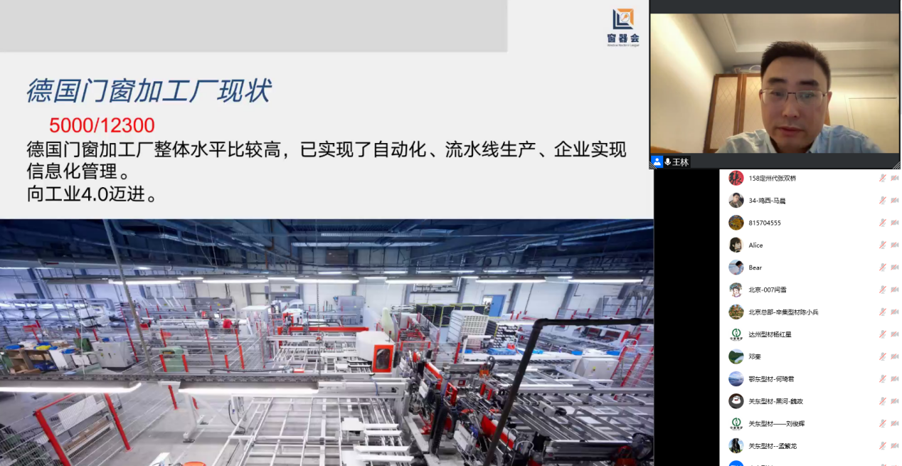 首先由中国建筑金属结构协会塑料门窗及建筑装饰制品分会专家王林先生对欧洲塑料门窗行业智能制造技术现状及现阶段欧洲流行的型材新技术、新工艺进行分享。
