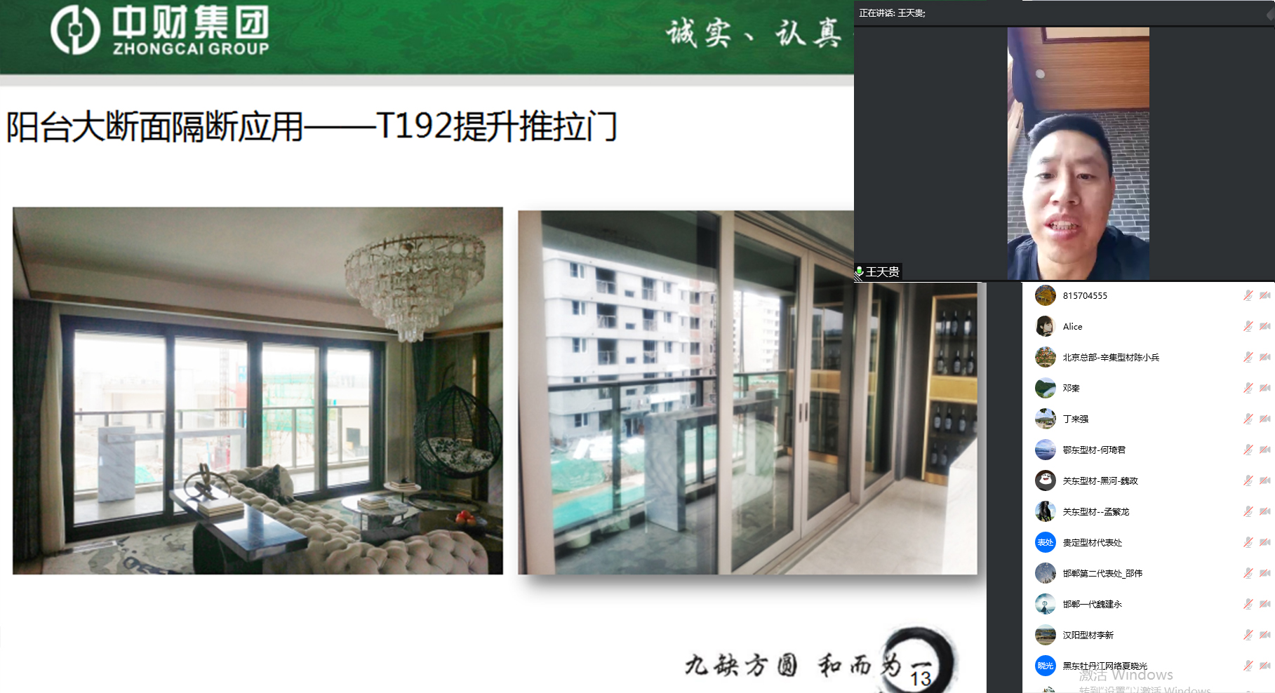 乐鱼网页版登录入口讯 8月18日,乐鱼网页版登录入口型材产品第三期内训会于13:30准时召开。此次会议旨在推动型材新产品的市场推广工作,把握行业高性能塑料门窗产业发展机遇。本次内训会以腾讯视频的形式召开,邀请了中国建筑金属结构协会塑料门窗及建筑装饰制品分会专家、乐鱼网页版登录入口化建业型材相关营销机构、各基地服务部型材相关技术服务人员等120多人参与会议。会议由型材策划处产品设计科科长黄生友主持。