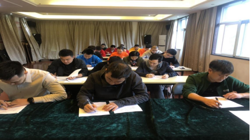 随后,进行了营销类和业务类考试,参训学员都奋笔疾书,认真作答,把自己的知识储备与学习展现在试卷中。
