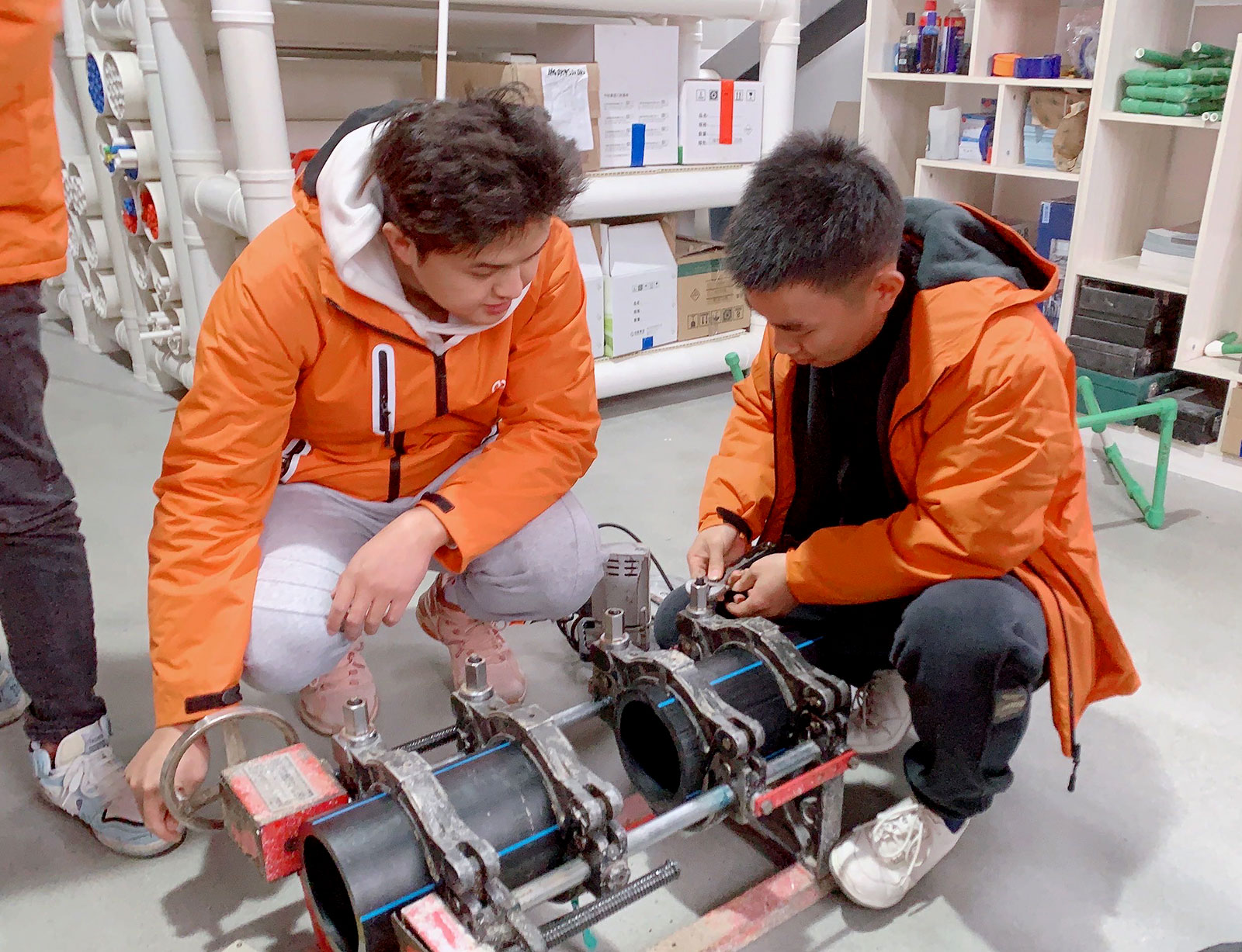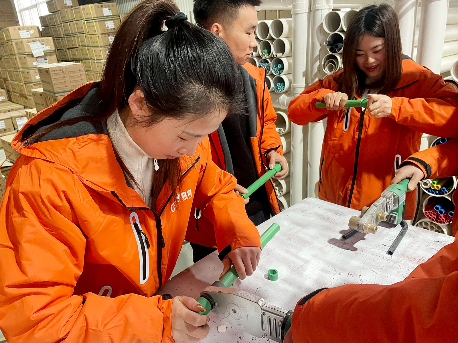 培训最后,由营销部人员带领大家参观生产车间,并进行PE等产品热熔焊接实操训练,学员们在动手实践中互相交流、互相配合、气氛活跃。