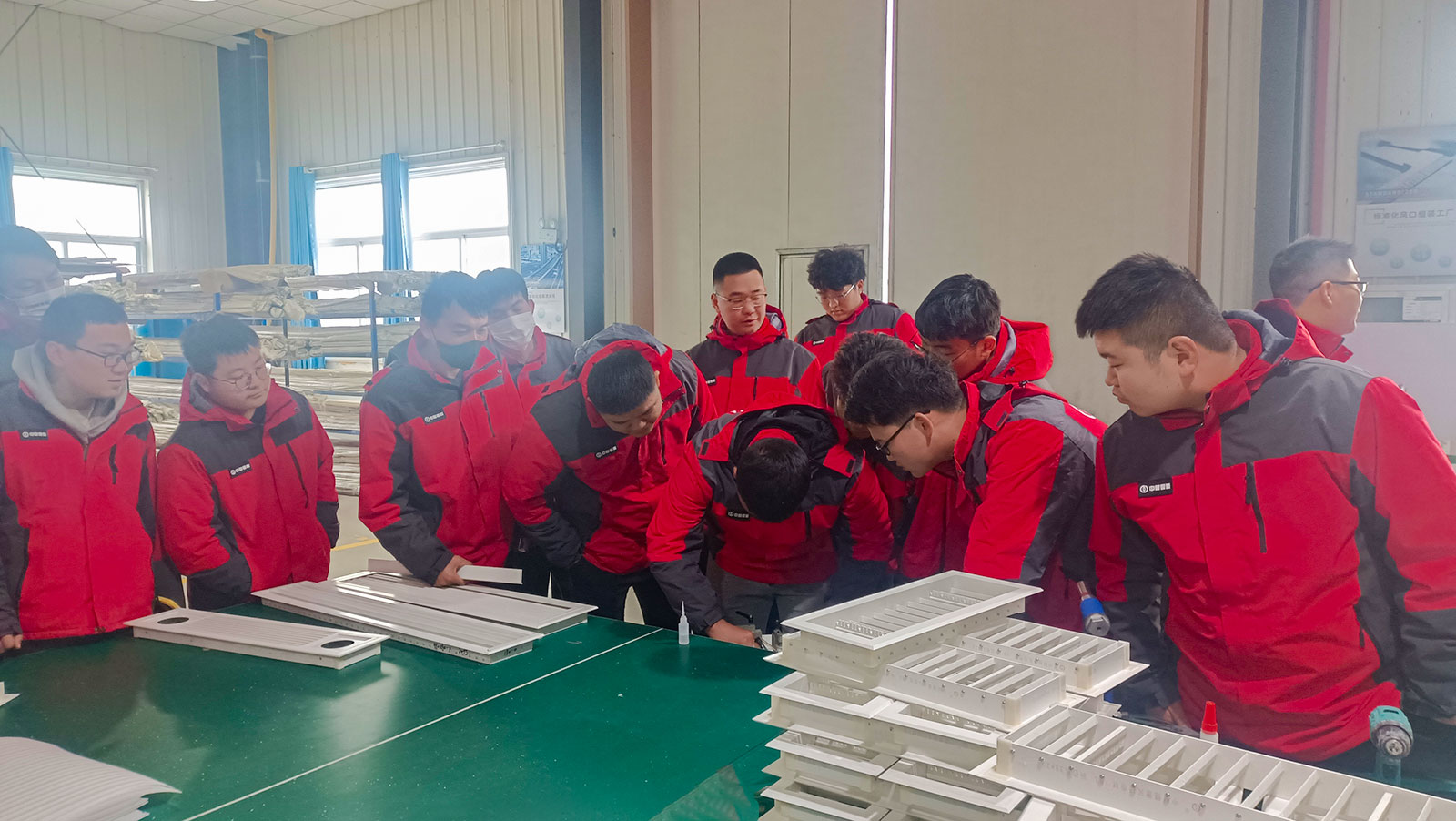 2月22日,由暖通项目部安装工程师封祖勇老师介绍乐鱼网页版登录入口特约加工厂标准化建设及规划指南,随后是互动讨论及答疑环节。所有理论知识学习结束后,在基地相关部门领导及同事的支持和帮助下,学习了风口型材生产流程、工艺以及风口成品组装。下午,学员们通过分组以团队协作的方式进行实操训练,制作成品风口。以知识的名义,践行进步的力量。最后由暖通项目部胡浩南对本次培训进行总结。