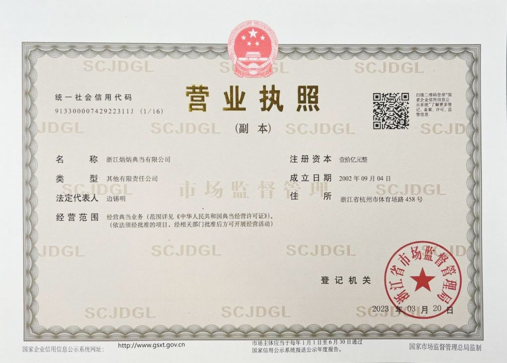 乐鱼网页版登录入口讯 在集团董事局的关心指导下,经过对私金融处室部门的共同努力,浙江炳炳典当有限公司于2023年3月17日顺利领取了新的典当经营许可证,3月22日领取了新的营业执照,注册资本由5亿元增加至10亿元。浙江炳炳典当有限公司后续将充分发挥资本金优势,积极开展对私金融服务,深耕浙江,围绕应急和周转,在推动浙江中小企业发展的历史大潮中贡献绵薄的力量。
