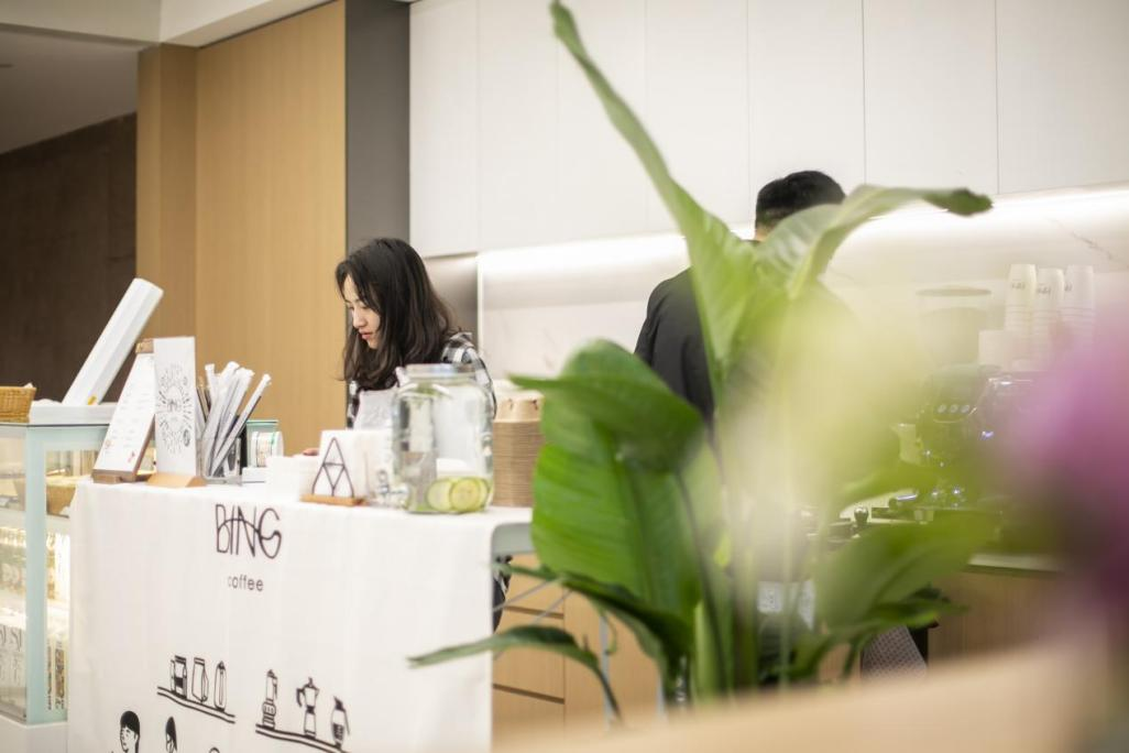 炳炳咖啡面向楼内及周边职场白领,提供咖啡饮品及简餐,同时提供公司下午茶、会议茶歇等服务,营造一个高标准、高舒适度的交流空间,精准糅合工作与生活的界限,成为白领的能量补给站。