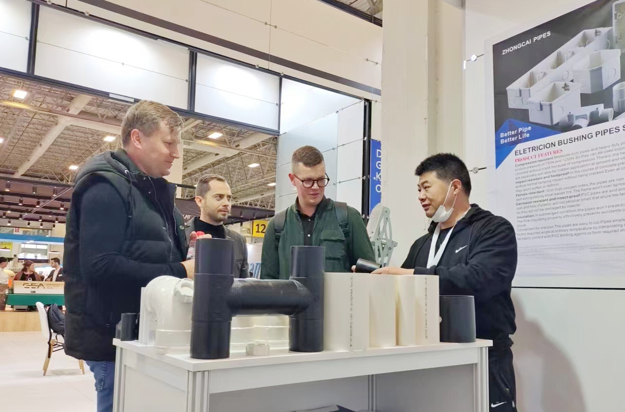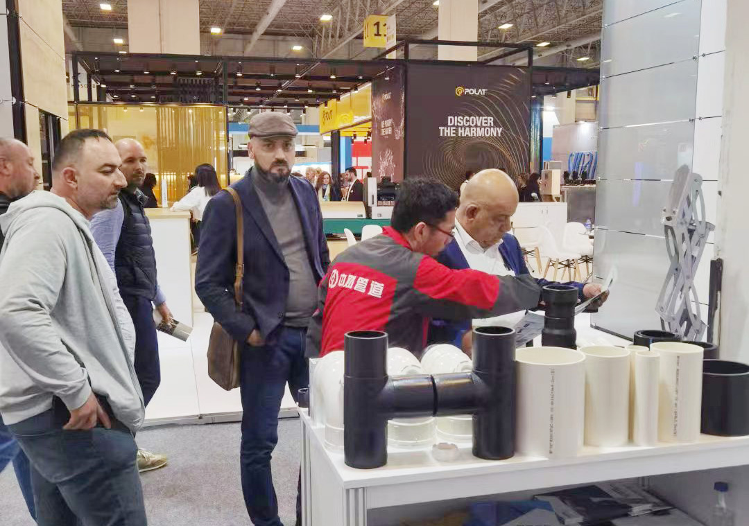 本次展会海外总部精心准备样品,集中展示了乐鱼网页版登录入口的PE给水,PE钢丝网骨架管和PVC、PE、PPR各类管道新产品,以及PVC屋檐排水系统和空调冷凝管、护套管、PVC型材。吸引了众多海外新老管道客户前来洽谈,共计接待海内外客户26批,分别来自全球各地9个国家和地区,取得了良好的展览效果。