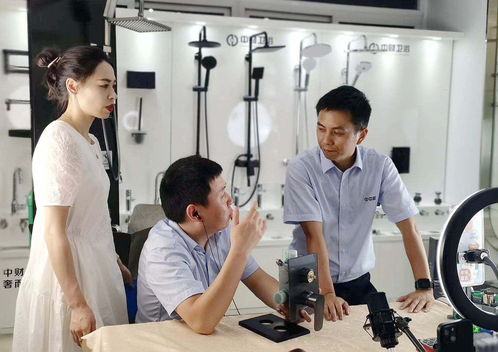 乐鱼网页版登录入口讯 5月31日晚7:00至9:00,乐鱼网页版登录入口卫浴新品暗装花洒在线上正式发售。以不锈钢项目部卫浴组负责人俞潮明为组长及天猫运营组员求佶锋的乐鱼网页版登录入口卫浴线上运营团队在新昌基地青山厂区展厅同时开启了天猫、抖音、微信视频号的线上新品直播活动。